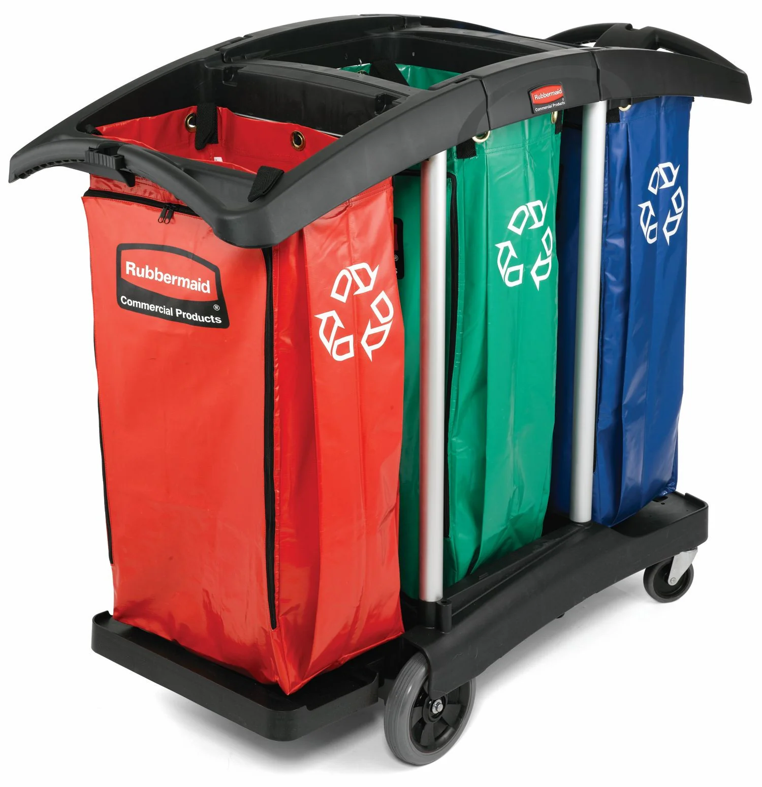 Collection carts should be equipped with at least two bins, and three if your school uses dual-stream recycling. Using a cart with only one bin will require multiple trips to separately collect trash and recyclables, making the process less efficient.